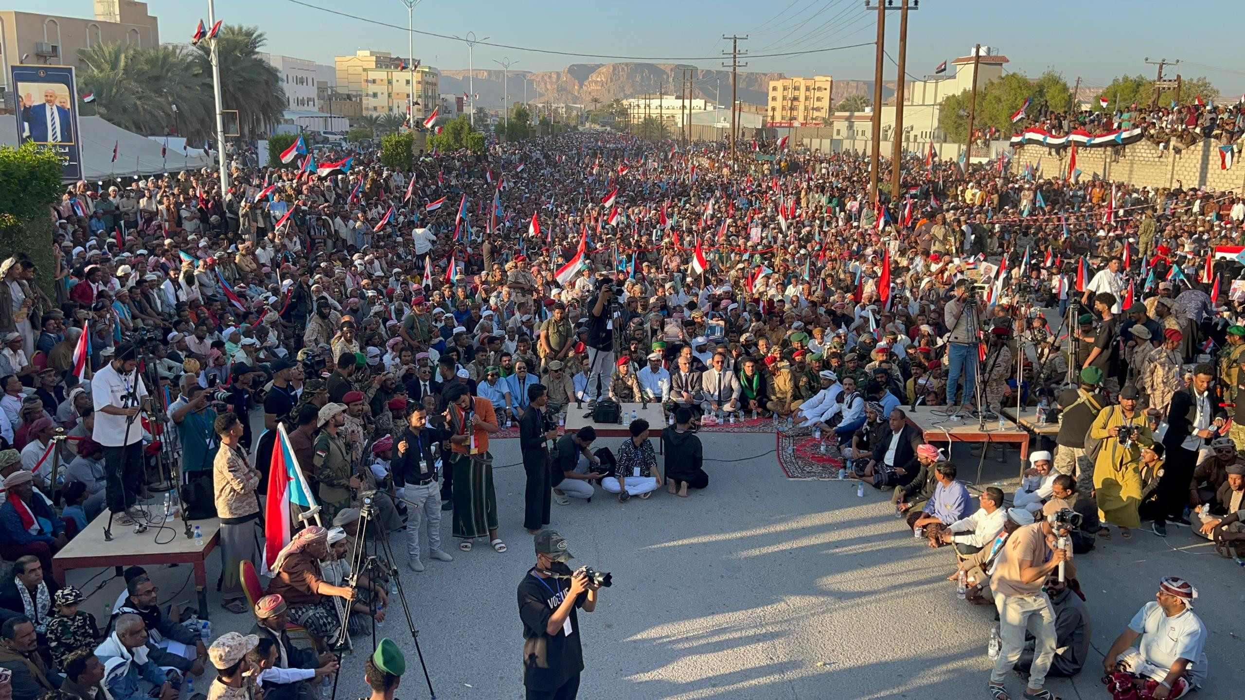 إن جماهير الجنوب الغفيرة تعلن للعالم بأسره أن عهد التردد قد ولى، وزمن القرار قد حان، فمن على تراب وادي حضرموت وصحرائها، حيث ترفرف رايات النصر التي رفعتها سواعد أبنائكم البواسل في النخبة الحضرمية والقوات المسلحة الجنوبية، نعلن بداية فصل جديد في تاريخ شعبنا.