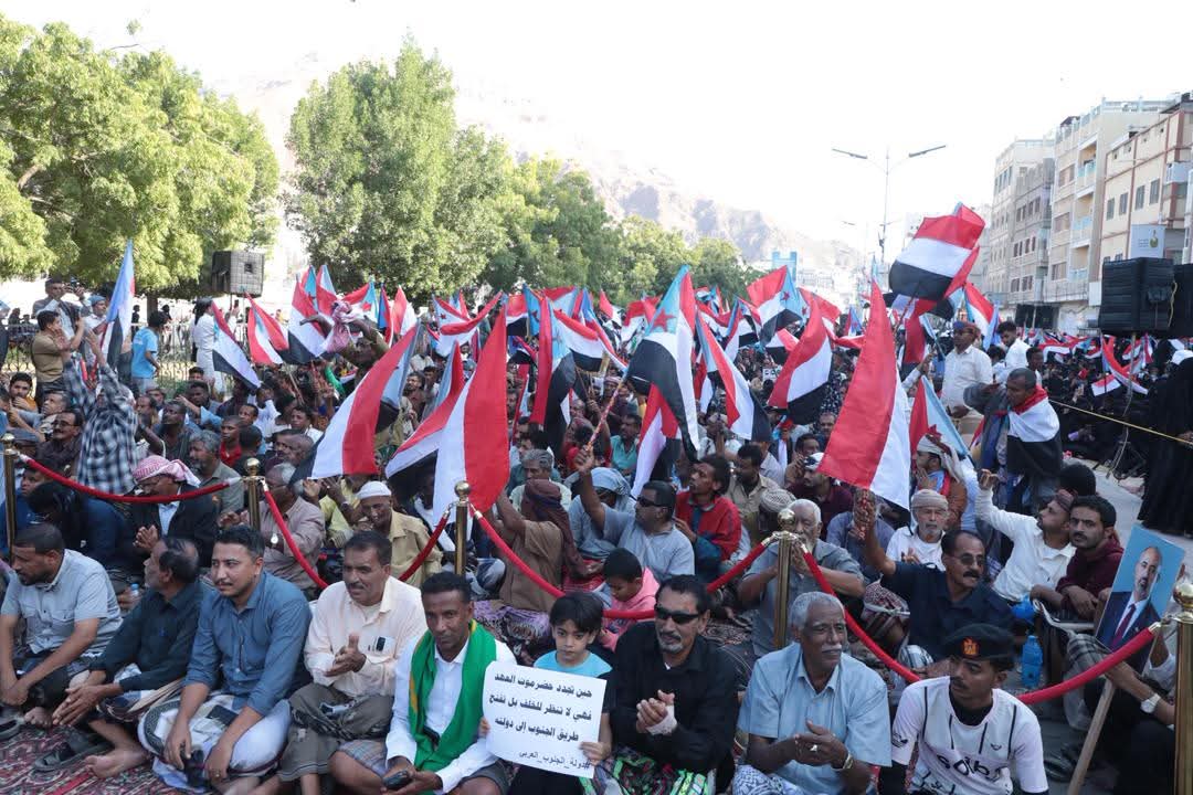 ورفعت في الفعالية أعلام الجنوب ولافتات تطالب بالإسراع في إعلان الدولة الجنوبية، كما جددت الجماهير تفويضها الكامل للرئيس القائد عيدروس قاسم الزُبيدي رئيس المجلس الانتقالي الجنوبي، ونائب رئيس مجلس القيادة الرئاسي، للسير نحو تحقيق تطلعات الشعب الجنوبي.