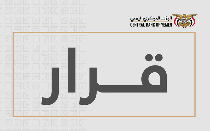 أصدر محافظ البنك المركزي اليمني، الأستاذ أحمد أحمد غالب، قرارًا رقم (2) لعام 2026م، قضى بسحب الترخيص الممنوح لف...... التفاصيل
