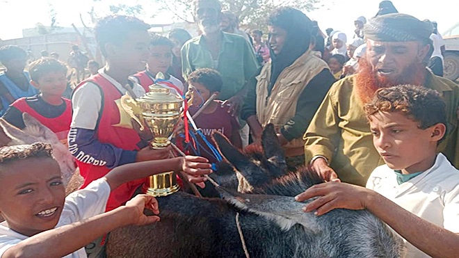 نفذت إدارة مدرسة كوكبان في وادي خير، بمديرية تبن، نشاطًا طلابيًا فريدًا تمثل في تنظيم سباق للحمير بين الطلاب، في خطوة تهدف إلى إدخال البهجة والسرور إلى نفوسهم، وتحفيزهم على التعليم، ضمن برنامج الأنشطة المدرسية التي تحرص المدرسة على تنفيذها بشكل دوري.