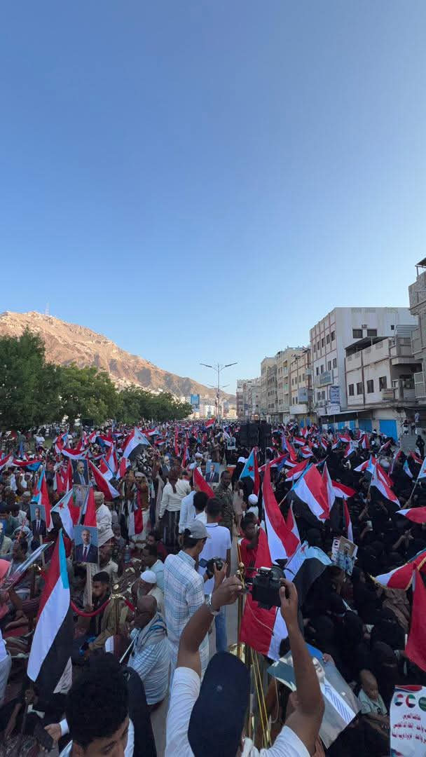 وشهدت الساحة توافد الآلاف من المواطنين، بمشاركة نسوية، من مختلف مديريات حضرموت ، في مشهد وصف بالمهيب، وسط هتافات مؤيدة للقيادة الجنوبية ورافضة لبقاء أي قوات خارج إطار الشرعية الجنوبية على أراضي الجنوب.