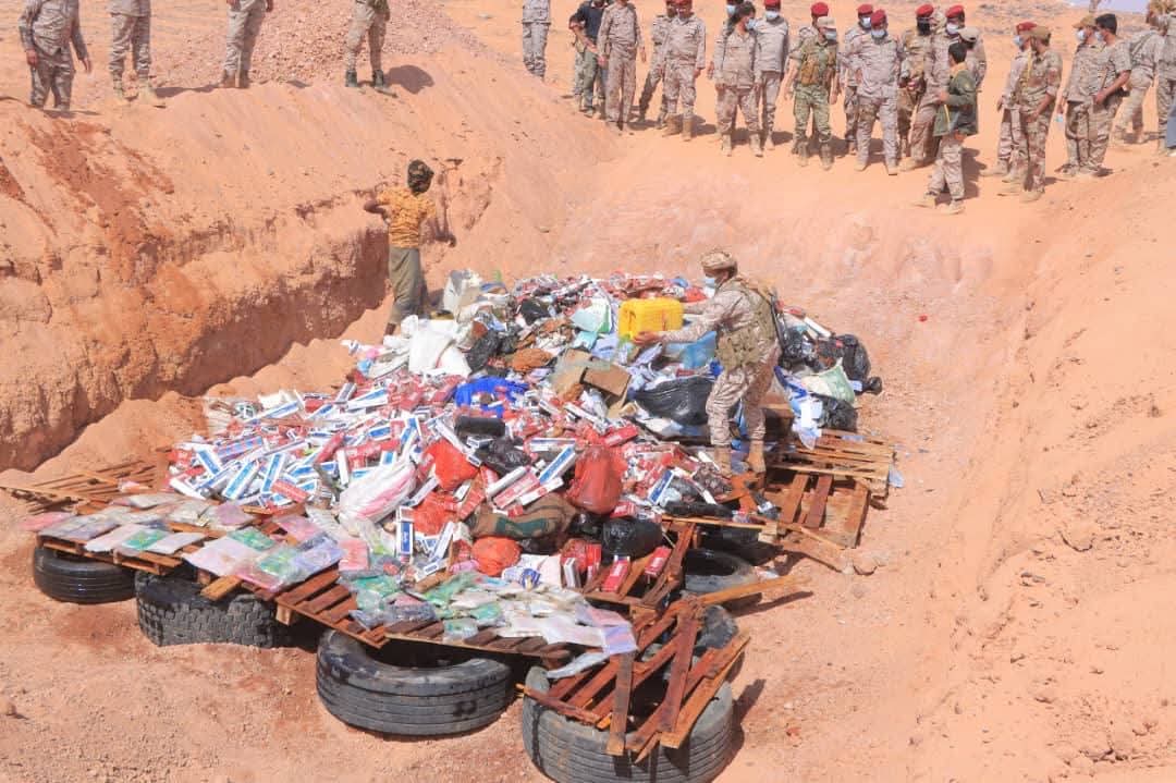 إضافة إلى 75 كيلو جرام قيرو، و68 كيلو جرام من العلاجات الممنوعة، و1300 كيلو جرام تمباك، و3300 عروسة من السجائر المهربة غير خاضعة للمعايير والمواصفات القانونية، و750 كيلو من القات المطحون.